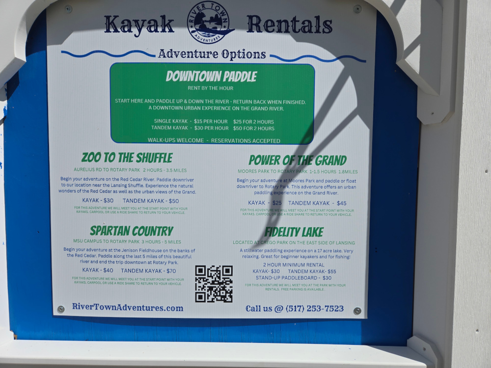 So the “Zoo to the Shuffle”, “Spartan Country” and “Fidelity Lake” go along the Red Cedar River and represent different distances from Rotary Park . This would be a separate project for kayaking but may be a future research project.