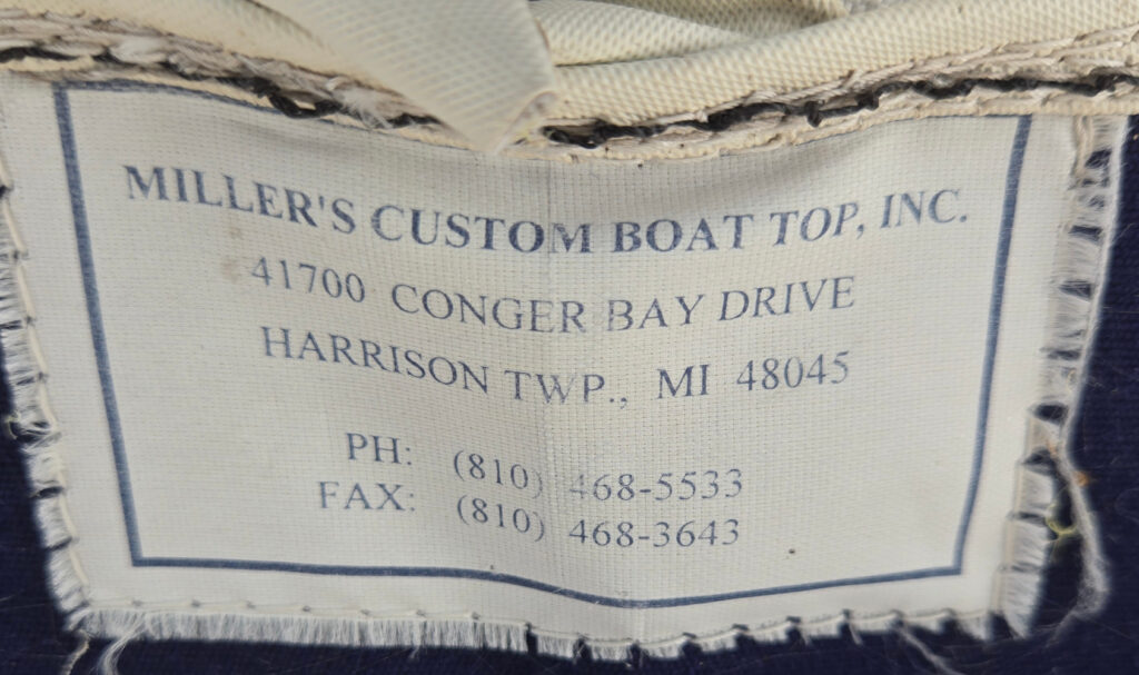 Checked out of the hotel and went to brunch. From brunch we went back to the boat and hung out. Again, quick web wipe down inside, quick sweep outside. Hung out in the upper helm and that’s when I noticed the tag on the Bimini Top