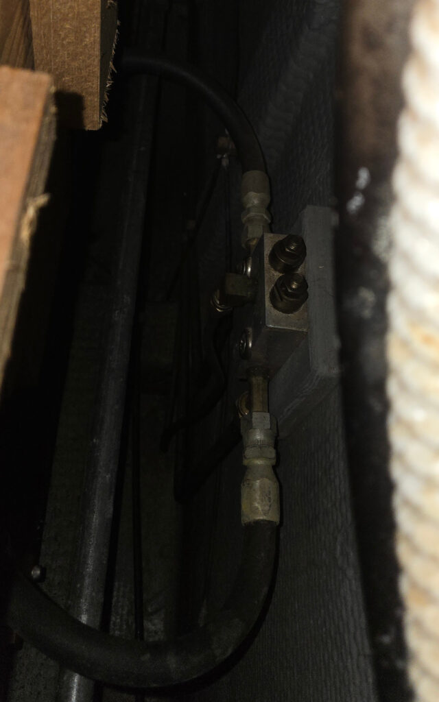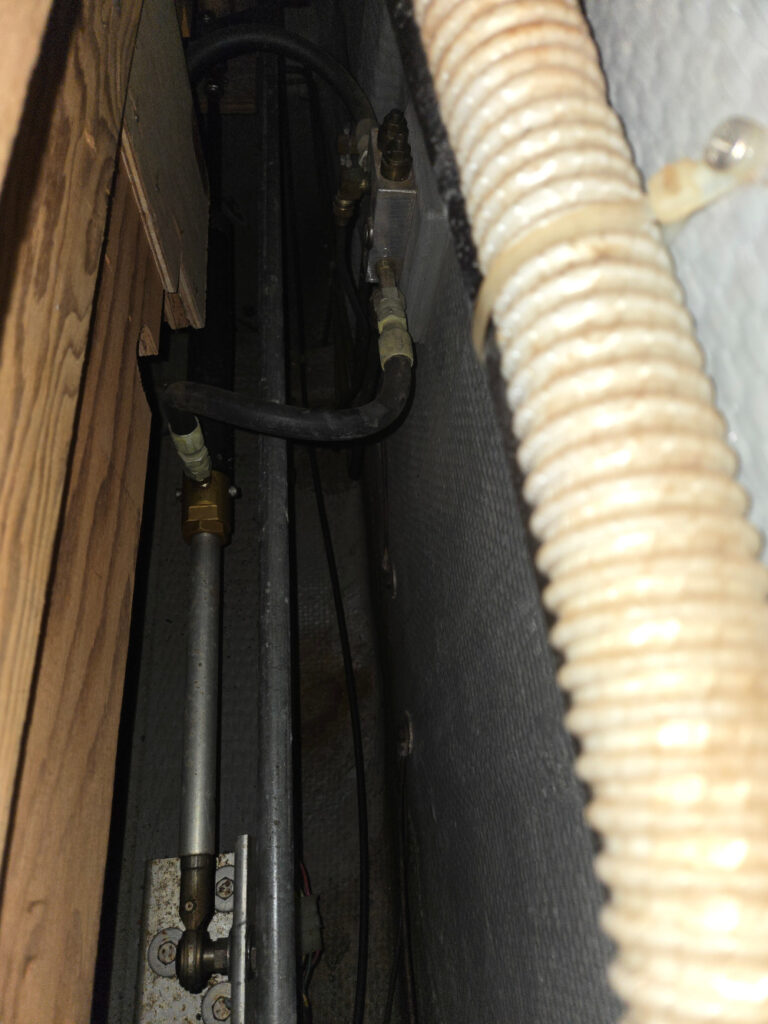 After arriving and on-loading stuff for the boat and to stay the night I performed the new “ritualistic” process of wiping down the inside of the boat to address the spiderwebs. I then made a futile attempt to sweep down the outside of the boat to address the webs. The boat needs a serious wash down and I just am not able to get the time to it. Once everything was onboard and the required wipe down was completed, went to the Watermark Restaurant for dinner. I came back and of the little time left I pulled back the headboard and located both the trim tab control box and reservoir, but also the steering hydraulic lower controls and bleeders.